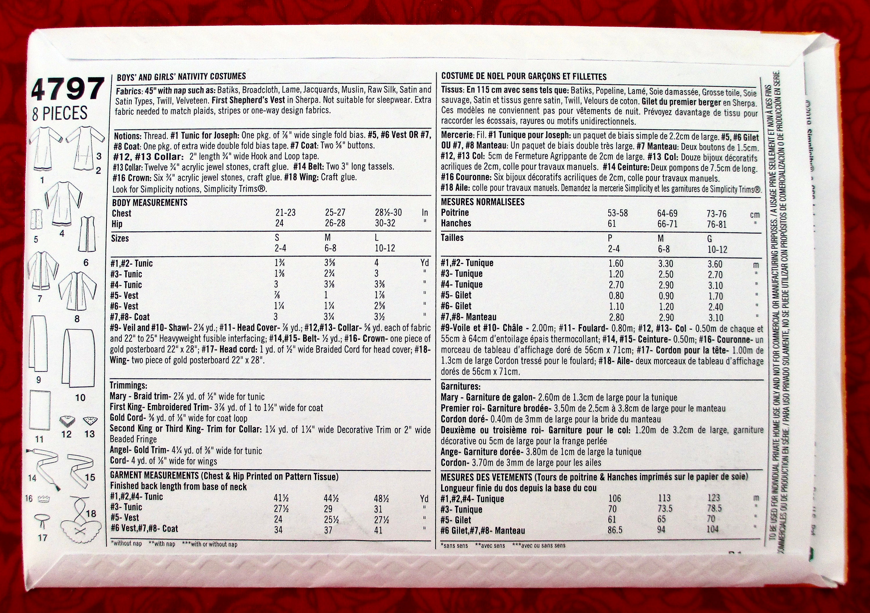 S4797 Simplicity Sewing Pattern Boys Girls Nativity Costumes Simplicity